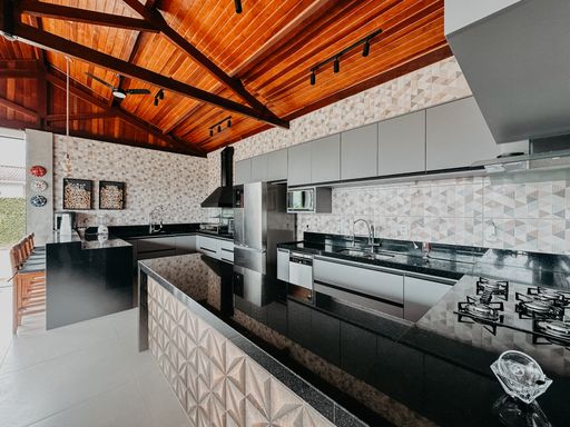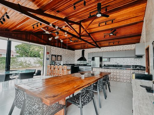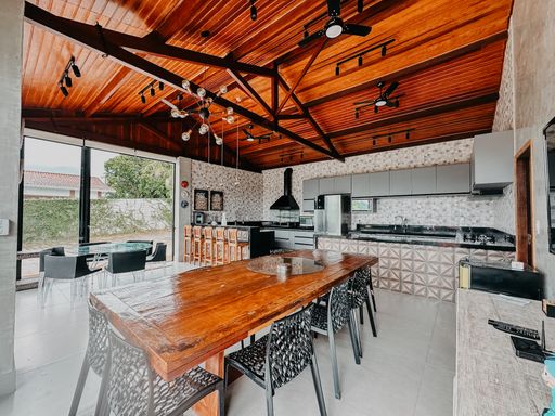 O imóvel possui 2.000 m² de terreno e 450 m² de área construída, com ambientes espaçosos, bem iluminados e pensados para receber. São 4 dormitórios, sendo 2 suítes, oferecendo privacidade para a família e praticidade para acomodar visitas com conforto. A área social é o coração da casa: um espaço gourmet amplo, ideal para churrascos, encontros e fins de semana que viram tradição.
