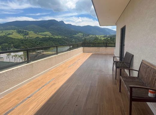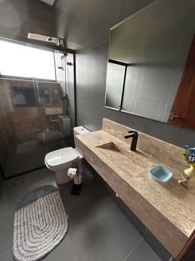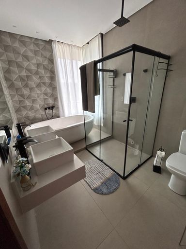 A área íntima conta com quatro suítes amplas, garantindo privacidade e conforto para todos os moradores. A suíte master é um verdadeiro refúgio, equipada com closet espaçoso e banheira, ideal para momentos de relaxamento. Todas as suítes possuem ar-condicionado, proporcionando conforto térmico em qualquer época do ano.