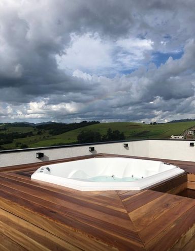 Um dos grandes destaques é o rooftop com spa, um ambiente exclusivo que proporciona uma experiência diferenciada, ideal para relaxar enquanto se aprecia a vista e o pôr do sol.