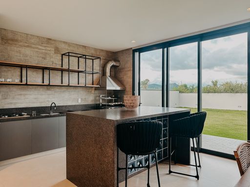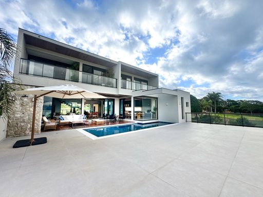 A residência conta com 5 suítes, sendo 1 suíte térrea, ideal para acessibilidade e praticidade no dia a dia. Totalmente mobiliada e decorada, possui ar-condicionado em todos os ambientes e acabamento sofisticado. Um diferencial de peso: mobiliário Silvana Cecilio e projeto assinado pela designer de interiores Rosa Maria, trazendo elegância, unidade estética e alto nível de detalhes.