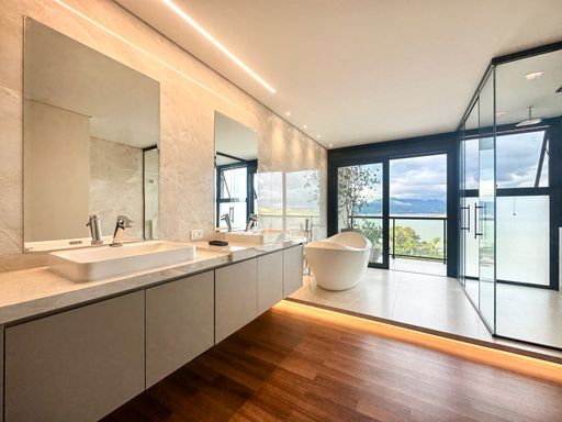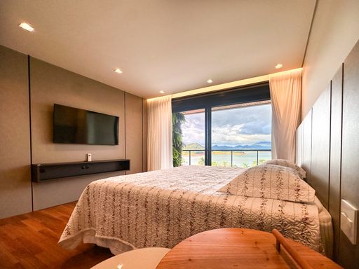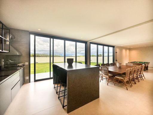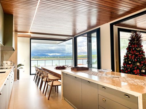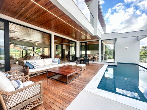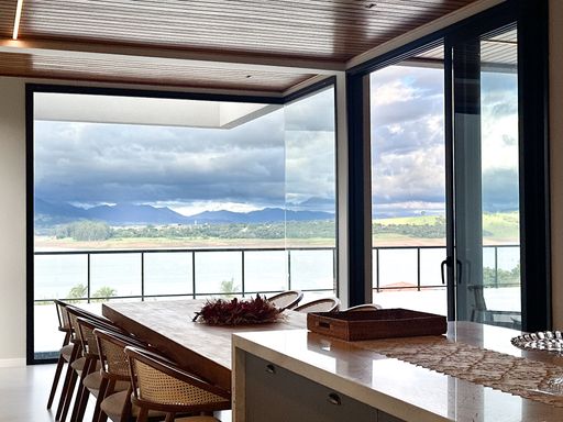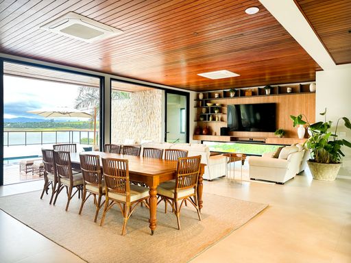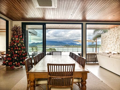 Em Bragança Paulista/SP, esta casa de alto padrão à beira da represa entrega um pacote raro: 1.000 m² de terreno, 650 m² de área construída e vista panorâmica para a represa em todos os cômodos — daqueles imóveis que parecem “de revista”, mas são para viver.
