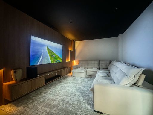 Para lazer e entretenimento, a casa oferece home cinema e salão de jogos, perfeitos para reunir família e amigos com conforto e privacidade. O espaço externo e a estrutura do imóvel também impressionam: vaga para até 20 carros, ideal para eventos e recepções.